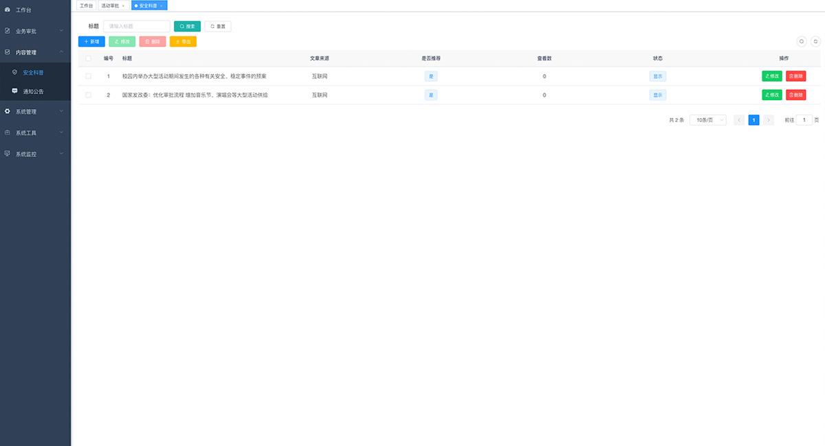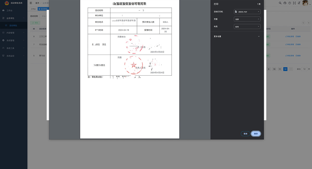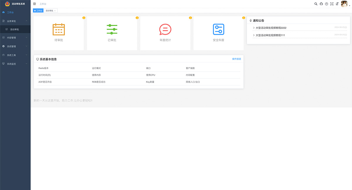 適用于政府機關、企事單位活動審批,系統(tǒng)采用Java EE 企業(yè)級快速開發(fā)平臺,基于經(jīng)典技術組合(Spring Boot、Spring Security、MyBatis、Jwt、Vue)