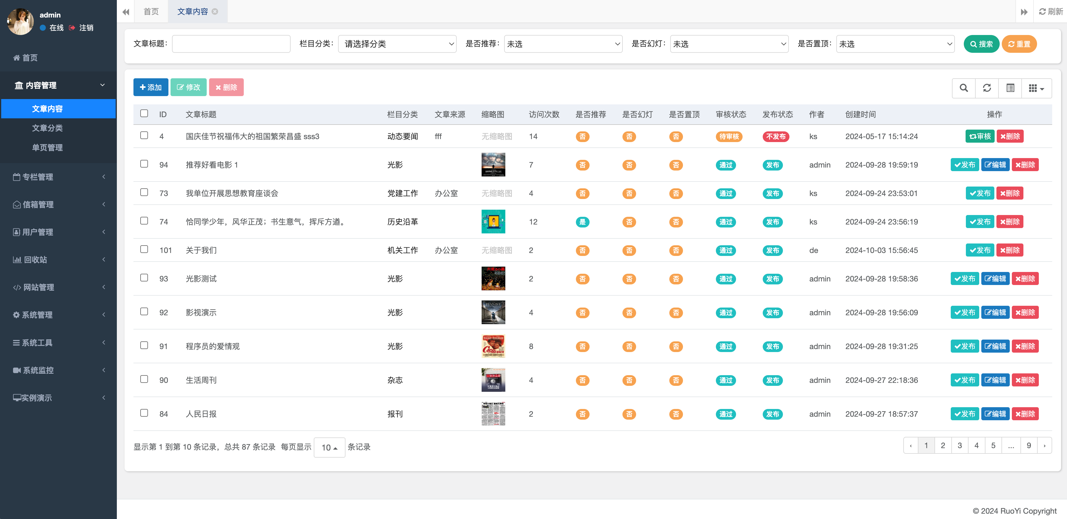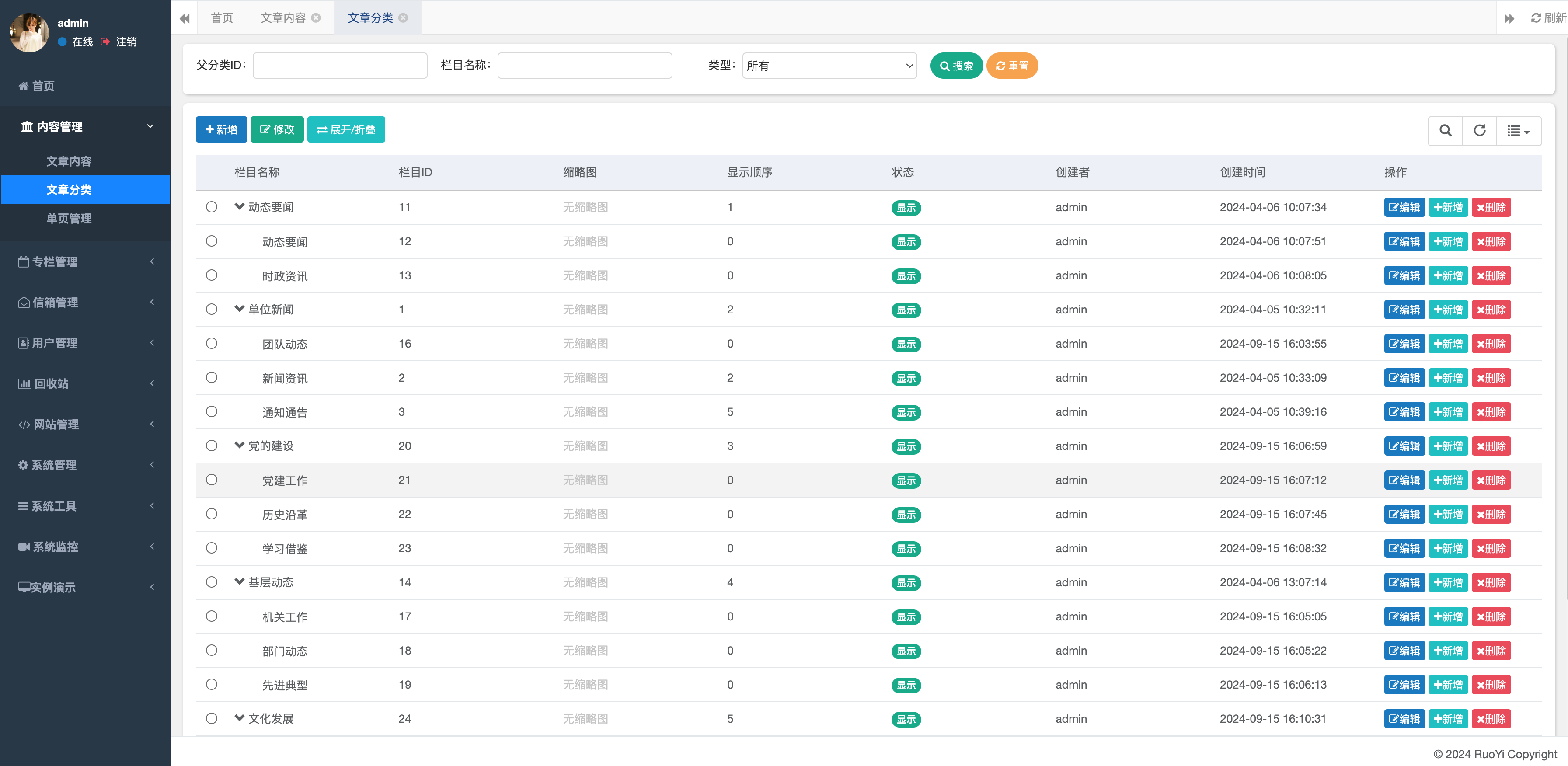 文章內容推薦、置頂、幻燈、審核、發布、跳轉鏈接;無限級分類,支持自定義分類模板