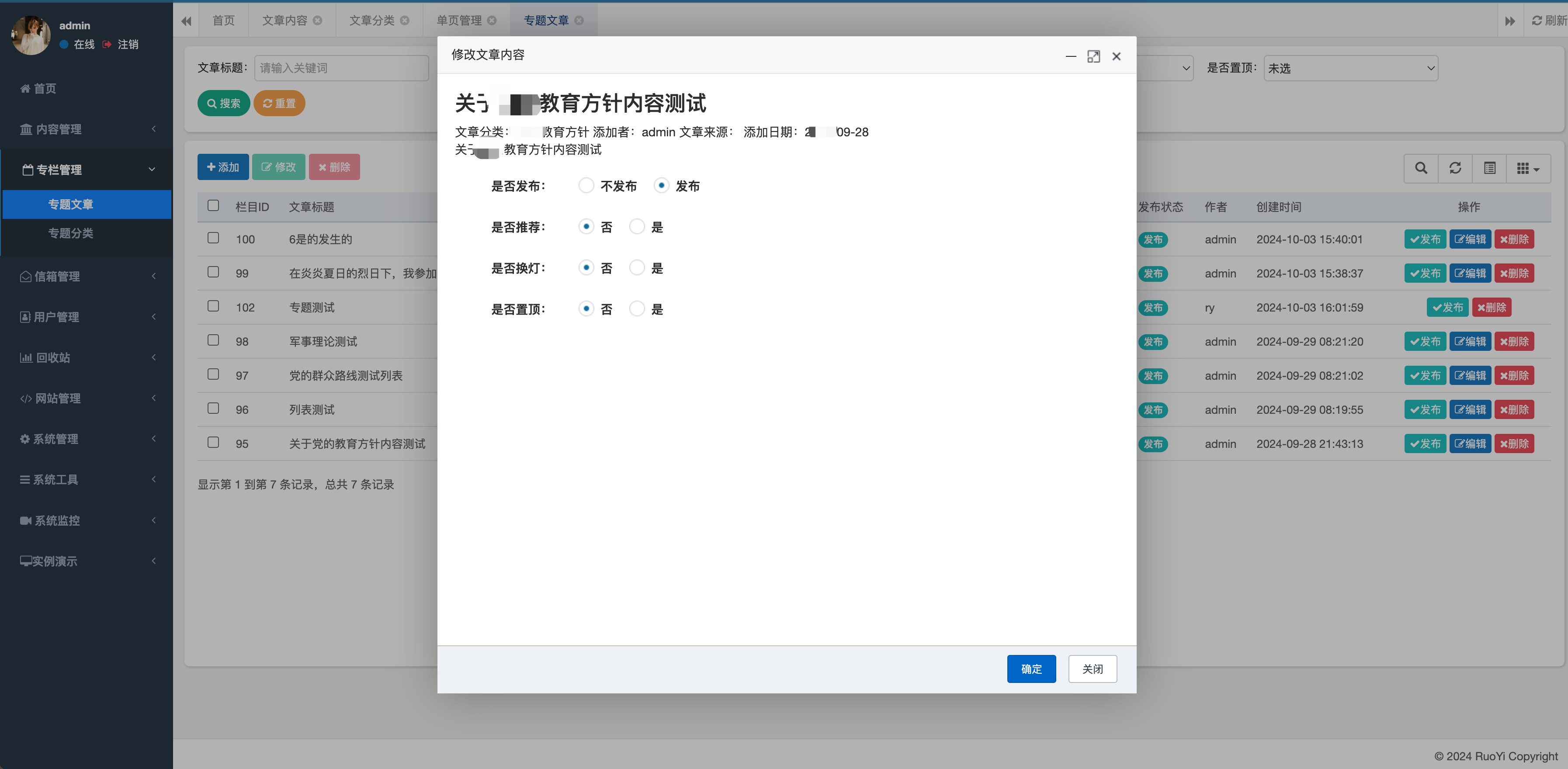 專題專欄,支持自定義個性化頁面模板定制,內容及分類獨立管理,任意欄目調用;